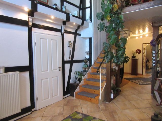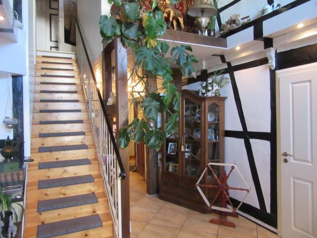 Das individulle 3-Familienhaus mit 1 Carport und 3 Stellplätzen und idyllischen Garten bietet viele Möglichkeiten. Die attraktive Immobilie wurde ursprünglich 1865 erstellt und in den letzten 3 Jahrzehnten immer wieder geschmackvoll modernisiert und renoviert. Bauweise: Vordere Teil Fachwerk, hintere Teil (angebaut ca. 1935) Teilfachwerk, Außenwände mit rotem Klinker, Krüppelwalmdach (neu in 1989): Ziegel in rot, Hausflur (ehemalige Tenne): Museumsartig gestaltet, einmaliges, als Wohlfühloase angelegtes Grundstück (Südausrichtung).