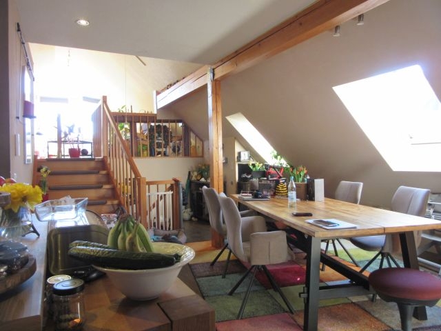 3) 4-Zimmer-WHG (ca. 82 qm- im 1. OG und DG): Wohnküche (offen) mit Eßbereich, Wohnzimmer, Schlafzimmer, Kinderzimmer, Büro.