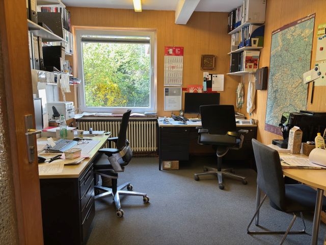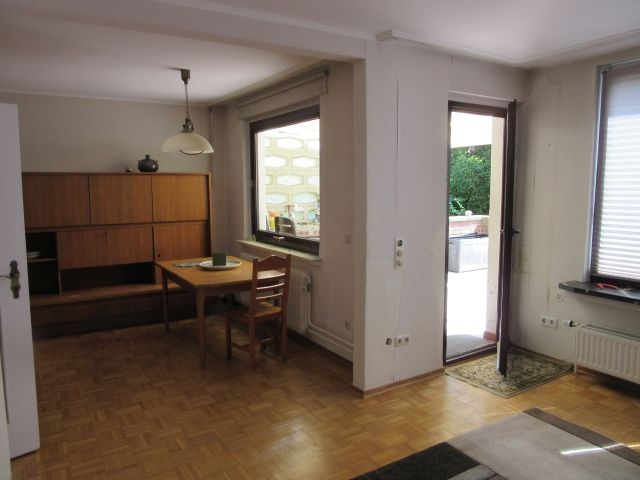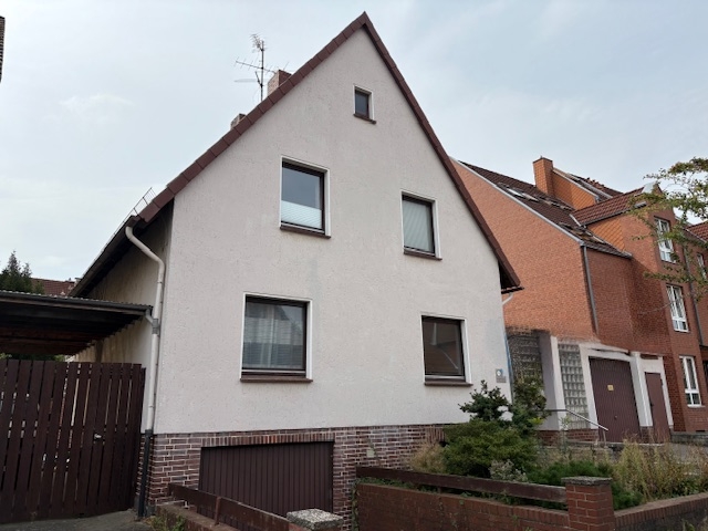 1-Familienwohnhaus mit Anbau (Büro), Garage mit 2 Stellplätzen (hintereinander liegend) und Carport, 1 1/2 geschossig, massiv gebaut, Bj. 1957, Außenwände: Verputzt und weiss gestrichen, Satteldach, Dachziegel in rot, Dachsparren und oberste Geschoßdecke mit Dämmung, Haupthaus voll unterkellert, ausgezeichnete Wohnlage in der Innenstadt, pflegeleicht angelegter Garten (Südausrichtung). Raumaufteilung= KG: Flur, Waschküche, Heizungskeller, Werkstatt, Lagerraum, Garage; EG: Flur, Küche, Wohn-/Esszimmer mit Ausgang zur Südterrasse, Schlafzimmer, Bad, DG: Flur, Schlafzimmer, 2 Kinderzimmer, Bad, sonniger Balkon. Die Wohn- und Gewerbefläche teilt sich, wie folgt, auf: EG= ca. 72 qm, DG= ca. 70 qm, Anbau (Eingang und Büro)= ca. 23 qm. Vor dem Einzug sind umfangreiche Renovierungen/Sanierungen, wie z. B. Maler- und Bodenbelagsarbeiten, Einbau einer neuen Heizung, Austausch der Fenster (größtenteils), erforderlich.