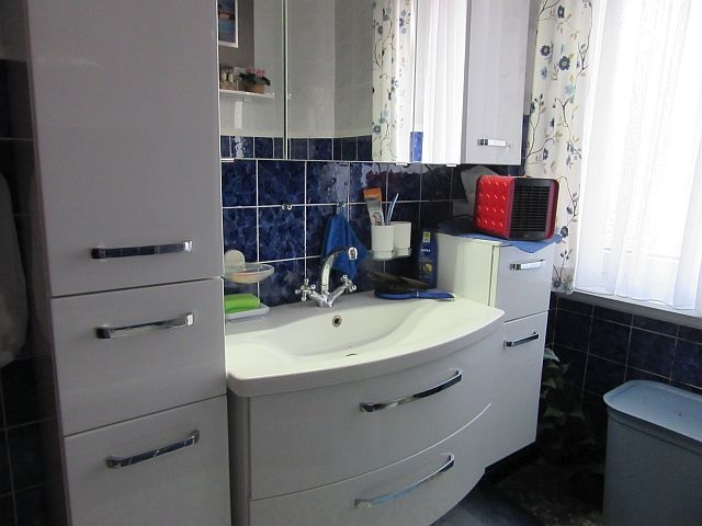 Das geräumige Mehrfamilienhaus, mit vielen Möglichkeiten, bietet folgende Ausstattung: - 4 Badezimmer (davon 3 mit Fenster): Jeweils WC, HWB, Badewanne - Bodenbeläge: Fliesen, Teppich, PVC - Fenster größtenteils aus Kunststoff (in weiss), doppelt isoliert verglast, wenige Holzfenster - Fensterbänke innen: Holz, außen: Stahlplatten - einige Außenrolläden - Türen aus Holz (braun), tlw. mit Glas - massive Betontreppe mit Kunststeinbelag und Handlauf - Rippenheizkörper - Ölzentralheizung von Buderus (Bj. 1983) mit Warmwasserspeicher - 2 Terrassen, 2 Balkone
