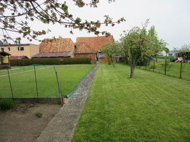 Die schöne 3-Zimmer-ETW über 2 Etagen (Haushälfte, angebaut in 1962, 5.000/10.000 ME/Anteil), befindet sich im EG und OG eines 2,5 geschossigen Wohnhauses (DG= Ausbaureserve), bestehend aus 2 Haushälften, mit insgesamt 3 Wohneinheiten. Die andere Haushälfte, bestehend aus 2 Wohnungen, wurde ursprüngch 1932 massiv gebaut. Fassade: Gedämmt, verputzt und cremeweiß gestrichen, Walmdach: Dachziegel in rot, Treppenhaus: Massive Holztreppe mit Teppichbelag und Handlauf, großzügiger, pflegeleicht angelegter Garten in idyllischer Feldrandlage. Vor Einzug sind u. a. folgende Modernisierungen/Sanierungen erforderlich: Maler- und Bodenbelagsarbeiten, Erneuerung der Elektrik, Neugestatung der Badezimmer, Einbau einer Küche. Das MFH befindet sich auf einem großen Grundstück mit 1.655 qm.